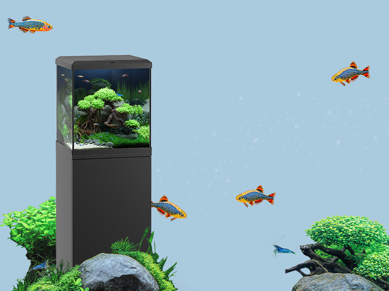 An elegant all-in-one aquarium with integrated lighting, filtration and heating, ideal for modern aquascaping in smaller spaces.